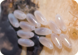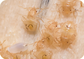 - Nimfen zijn ongeveer 1,5 tot 2 mm groot.